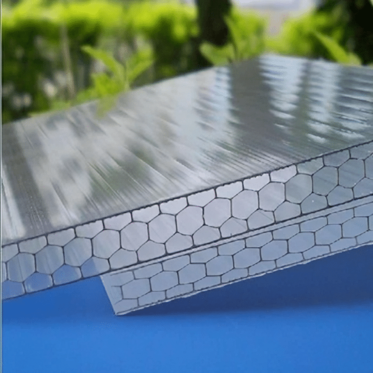 Polycarbonate honeycomb sheets provide a versatile solution for various architectural and industrial applications. Their honeycomb design not only reduces weight but also enhances structural integrity, offering a superior strength-to-weight ratio compared to traditional materials. These sheets are highly resistant to impact, chemicals, and extreme temperatures, making them ideal for demanding environments. Their excellent light diffusion properties and customizable thicknesses make them perfect for skylights, roofing, and greenhouse applications. Additionally, polycarbonate honeycomb sheets are easy to cut, shape, and install, resulting in significant time and cost savings in construction projects. Their eco-friendly nature, being fully recyclable, also supports sustainable building practices. These products come with a minimum 10-year limited written warranty against excessive yellowing, loss of light transmission, and loss of strength due to weathering